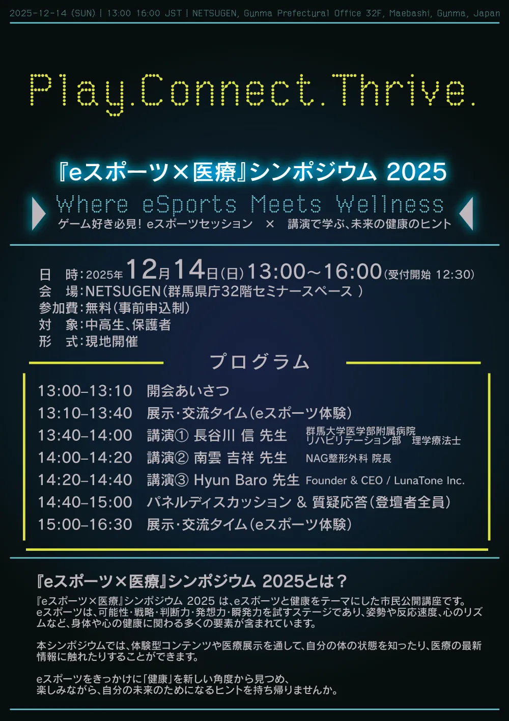 15:00–16:30展示・交流タイム(eスポーツ体験+医療展示)