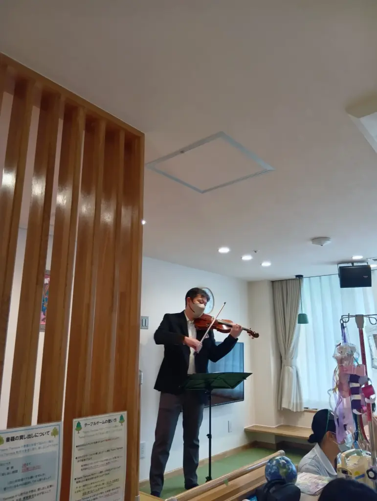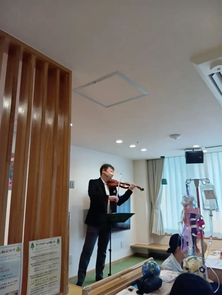 音楽はその一瞬を特別なものに変える力を持っています。演奏を耳にした子どもたちが思わず笑顔になり、ご家族やスタッフと共にその音を楽しむ姿は、私たちにとって何よりの喜びです。音楽のある時間が、心の余白を満たし、安心や希望へとつながることを願っています。そのひとときが、記憶にやさしく残り、明日を少し前向きに迎える力になりますように。